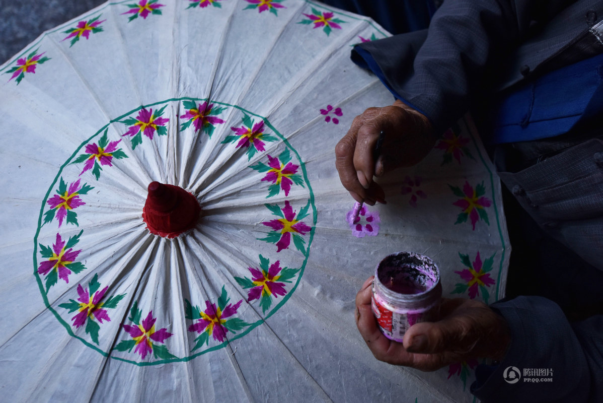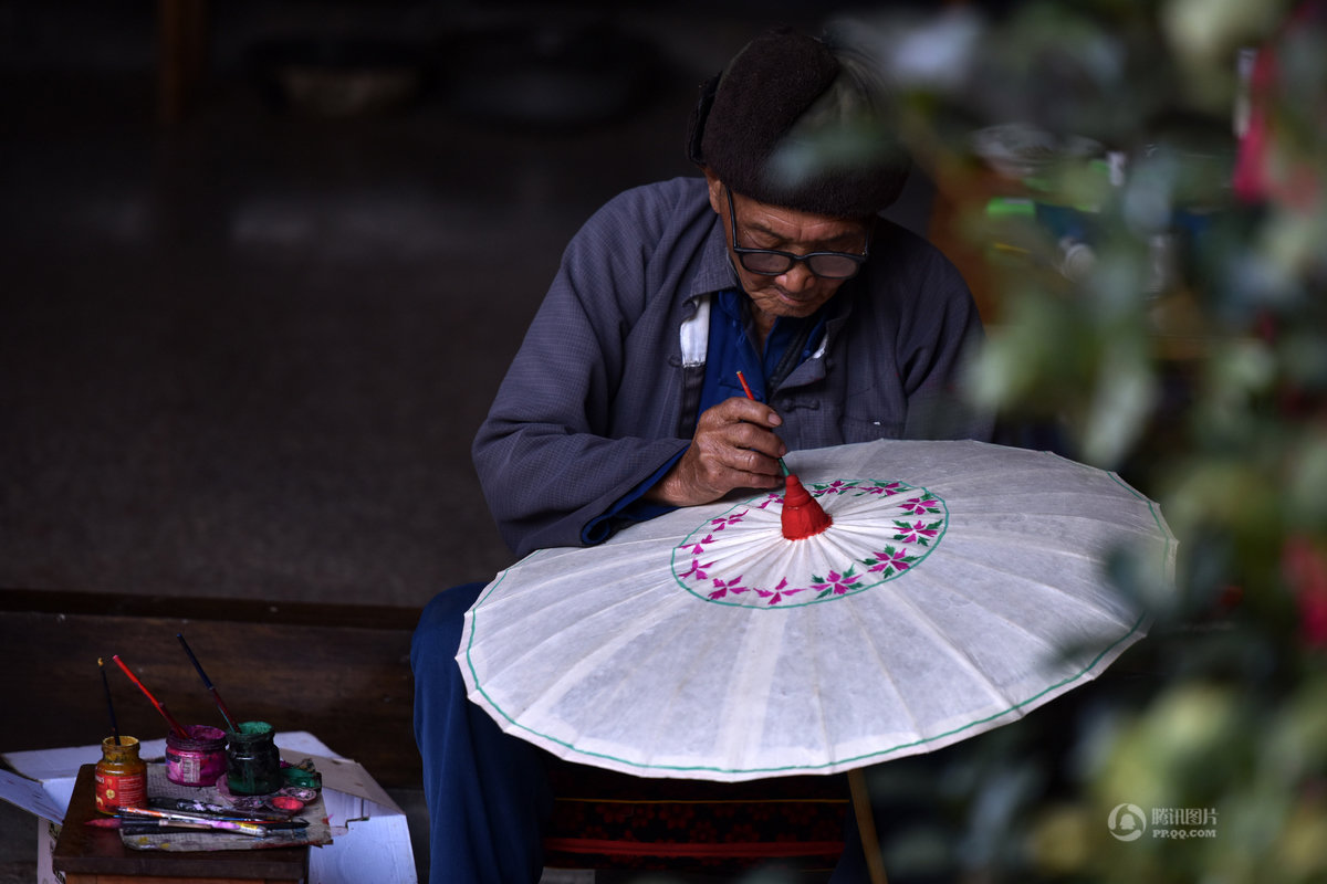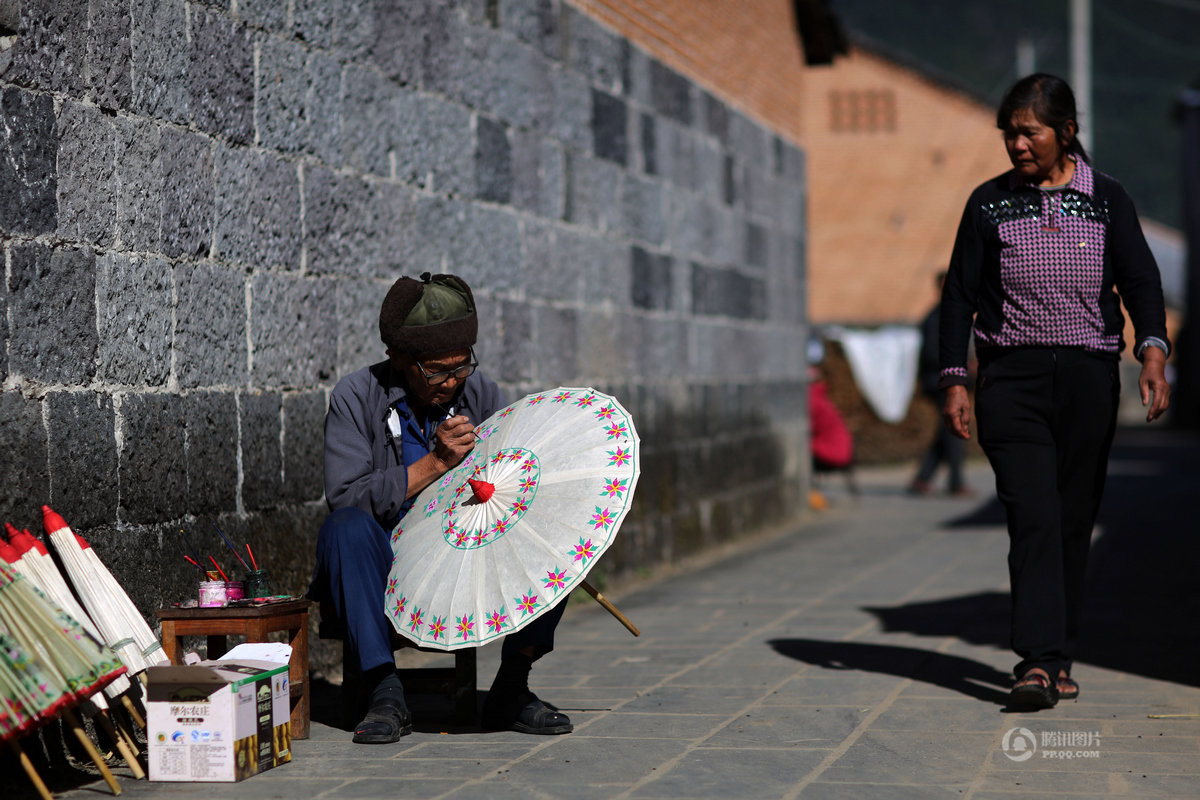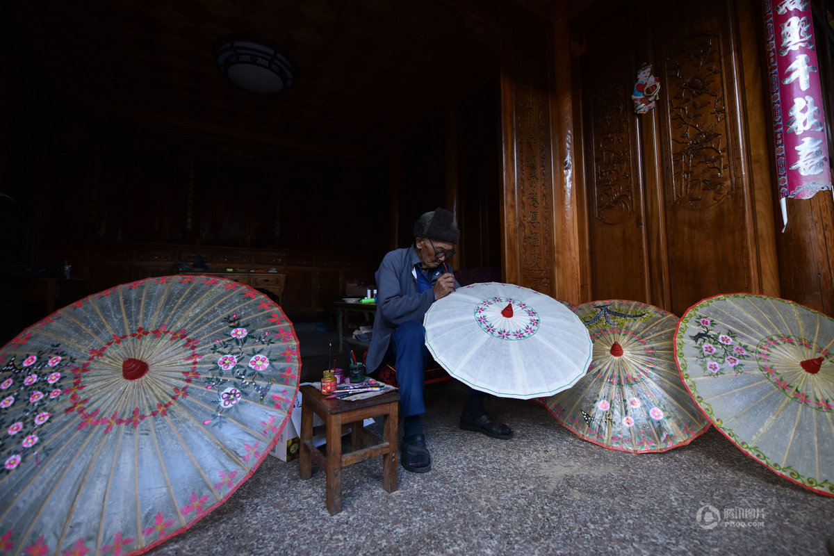 この小さな村では古くから油紙で傘を作ってきた歴史があります。油紙の傘は美しく、人気があります。鄭映海さんは保山市の無形文化遺産の伝承者です。彼は8歳から家業の傘づくりの手伝いを始めました。現在も同じ製法を頑なに守り続けています。