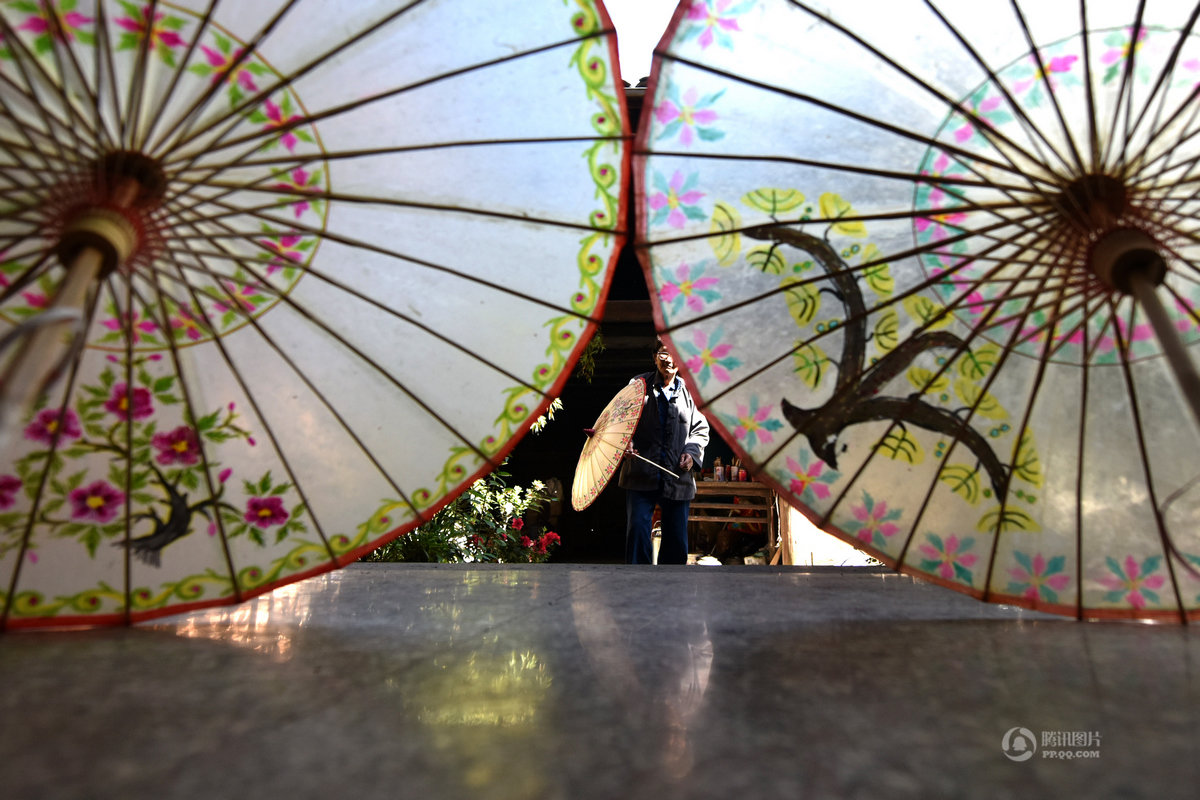 雲南省騰衝固東鎮の栄陽村は100戸余りの民家がある小さな古い村落です。この村では300年以上前から油紙で傘を作っています。鄭映海さんは傘を作り続けて10代目になります。