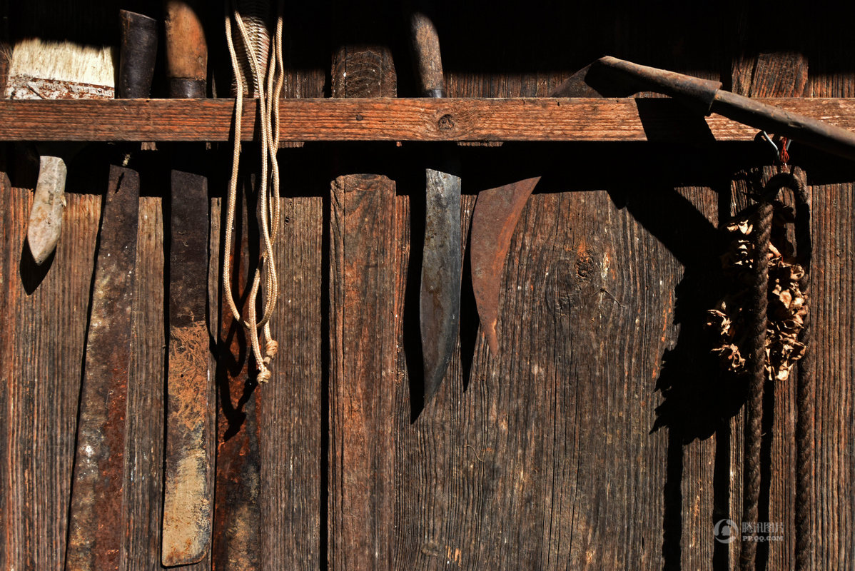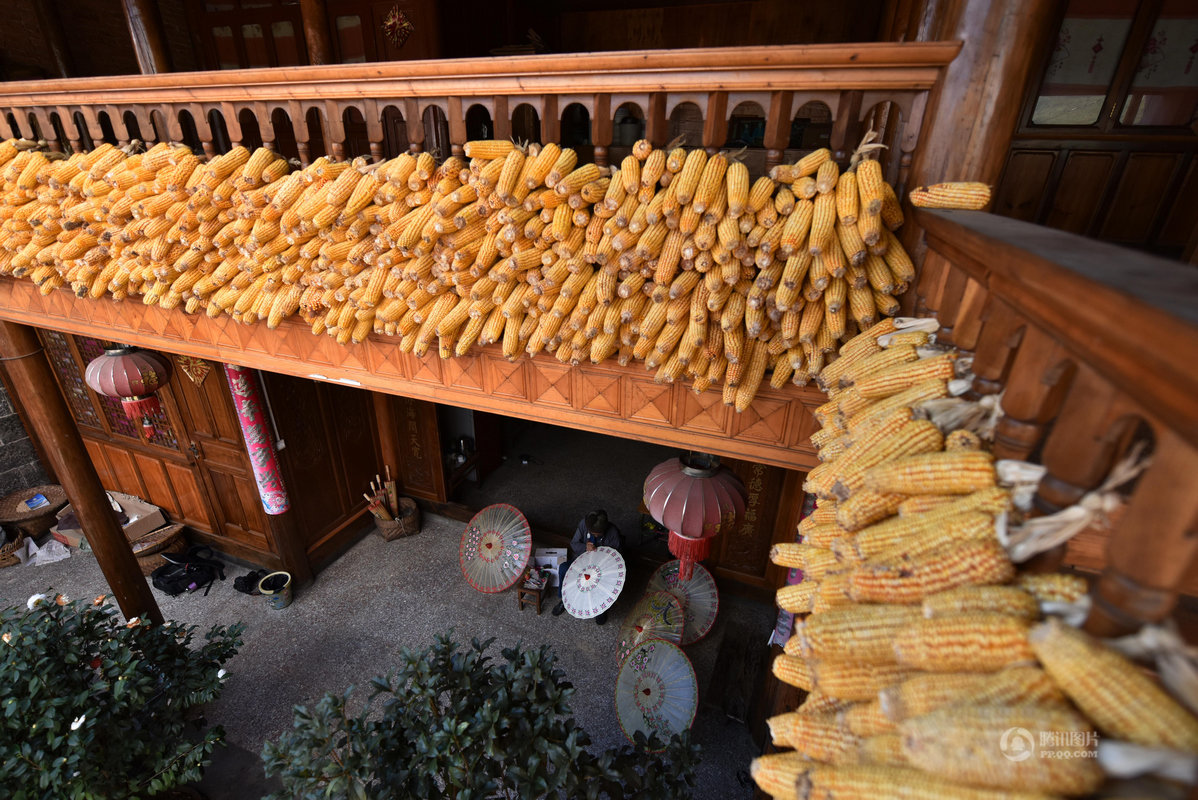 家の屋根にはトウモロコシが干されています。鄭さんには三人のお子さんがいらっしゃいます。三人とも傘を作れますが、現在は農業が主な仕事になっています。