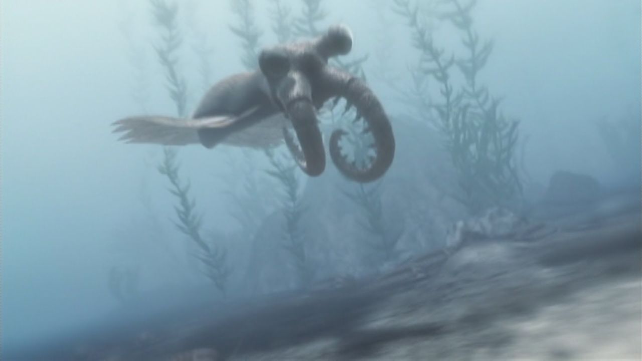 アノマロカリス(Anomalcaris)はエビの様な殻と尻尾を持っていますが、触手に歯があることを除いては触手と目はイカのようです。体長は60cmほどで、5億4千万年程前に生きていましたが、科学者達はもっと大きいのがいた、と考えています。波打ち際を歩いているときに、この古代のワラジムシみたいな肉食の生き物が足に襲い掛かり、その歯のある触手を巻き付けて足を食べてしまいそうです。