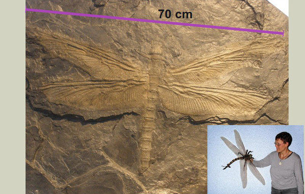 メガネウラ(Meganeura)は端から端までの羽の長さが70cmと人間の腕の長さほどもあります。